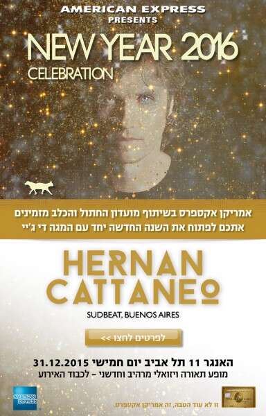אמריקן אקספרס, בשיתוף מועדון 'החתול והכלב' בתל אביב, עורכים מסיבה גדולה ומיוחדת יחד עם די ג'יי HERNAN CATTANEO - SUDBEAT, BUENOS AIRES, בהאנגר 11 נמל תל אביב.