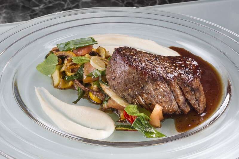 • פילה בקר שאטו ספגטי של זוקיני בשום, לימון, נענע ועגבניות, קרם שורש סלרי ורוטב בורדולייז 175ש"ח