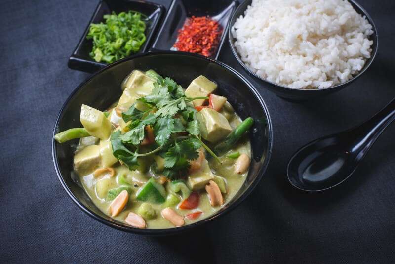 • צ'יאנג מאי קארי: קארי ירוק חריף, חלב קוקוס, עוף, קישוא, פלפל, שעועית ירוקה, בצל ירוק ובוטנים לצד אורז מאודה וכוסברה (56 ש"ח)