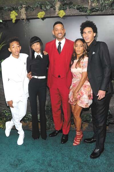 הסמית'ס. מימין: טריי (בנו מנישואיו הראשונים), ג'יידה, וויל, ווילו וג'יידן // צילום: GettyImages
