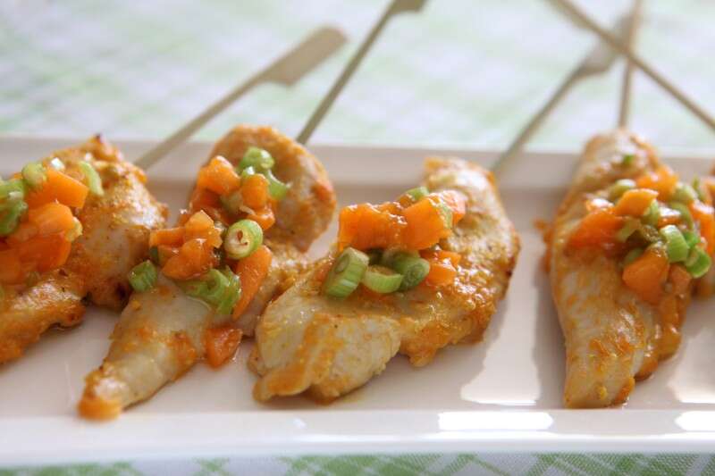 שיפודי עוף ברוטב צ'אטני משמש וחלב קוקוס