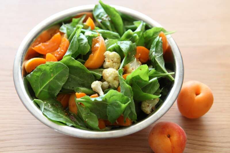 סלט משמשים, כרובית צלויה ותרד טרי