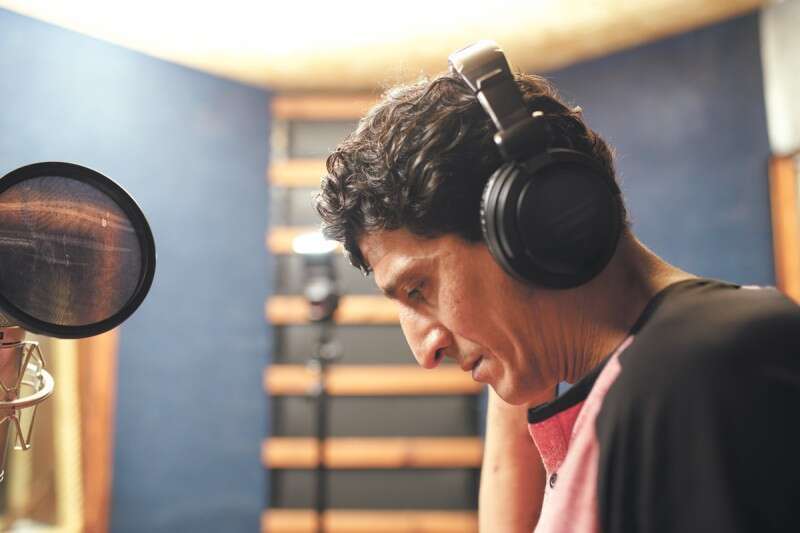 באולפן ההקלטות. "תן לי מוסיקה, חיים רגילים, תה, קפה, בריכה, לצחוק, וזהו" // צילום: אנצ'ו גוש - ג'יני