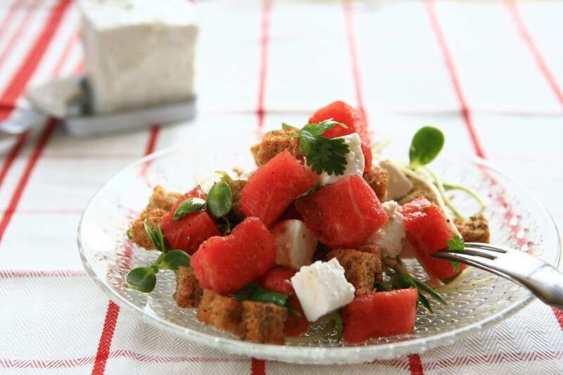 סלט אבטיח ובולגרית עם קרוטוני זעתר