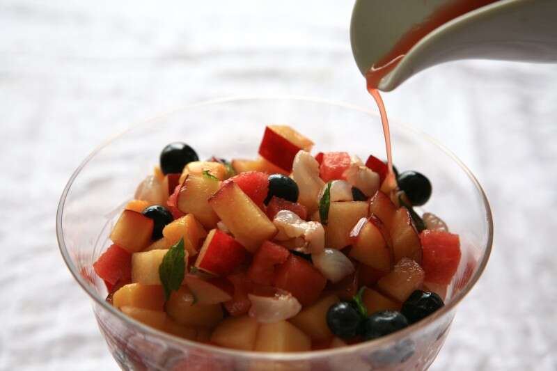 סלט פירות העונה עם רוטב אבטיח ונענע