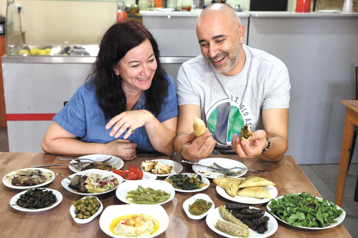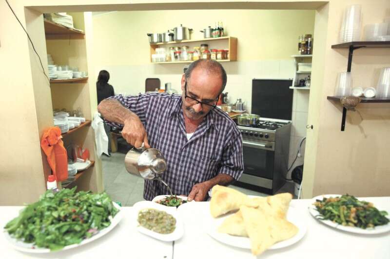הנה פטאייר יפה מראה, ובו תרד בר, זעתר וסומק. טעמו חמצמץ־מעודן בזכות הסומק הטרי, והנה קובה צמחוני מפתיע, אם כי אני תמיד מעדיפה את זה הבשרי (שניהם 5 שקלים ליחידה). תבשיל הבמיה מושך מייד את תשומת ליבנו, שכן אינו מוגש ברוטב עגבניות בנאלי. ב"שראביכ" מטגנים את הבמיה הצעירה ומבשלים את הירק המטוגן בלימון ובשום. זאת, ללא ספק, הבמיה הטעימה ביותר שפגשתי בה בשנים האחרונות.