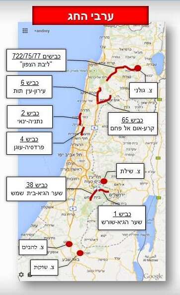 לנוחיותכם - מצורפת מפה של עומסי התנועה הצפויים במהלך ערבי החג וימי החג.