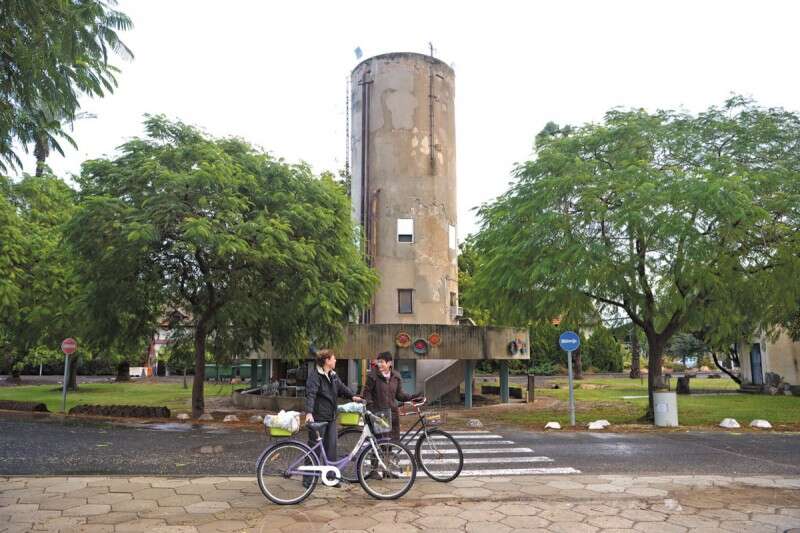 רכבת העמק עדיין יותר מעניינת. ריקי רתם (מימין) ורותי גולן עם האופניים בשבילי הקיבוץ // צילום: גיל אליהו - ג'יני