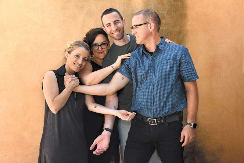 אסא (מימין), אלי, אורה, יעל וקעקוע הפירמידה. "ארבעה אנשים שכיוונו לקודקוד משותף" // צילום: אפרת אשל