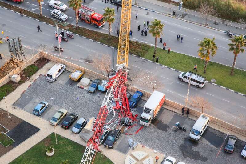 המנוף שקרס. הגיע עד חניית הבניין // צילום: יהושע יוסף