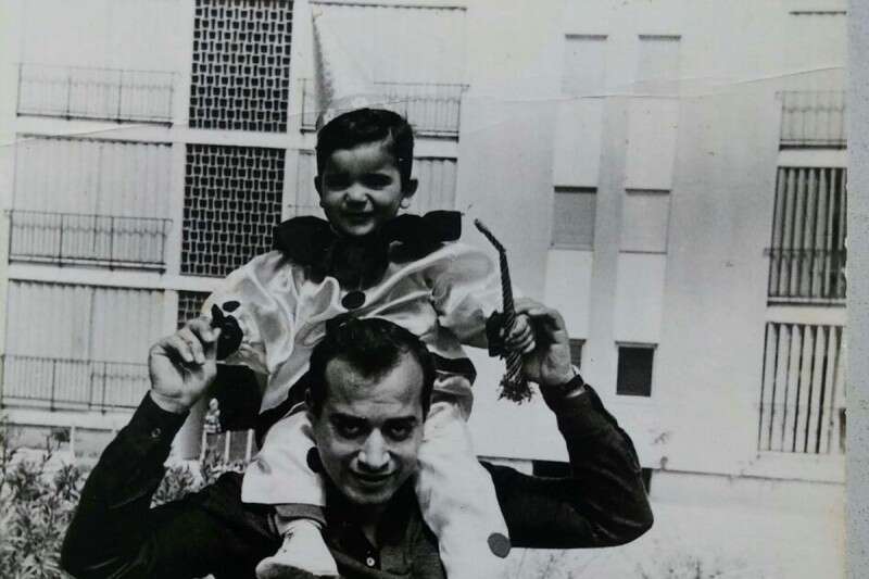 "בתמונה הזו אני בן 3, בכפר־סבא הקטנה שבילדותי היתה באמת סוג של כפר קטן. בתמונה מופיעות איתי שתי האחיות האהובות שלי, סיגל ודנה, כולנו בתחפושות שאמא שלי תפרה לנו. היום כבר לא עושים תחפושות כאלה, ואימהות כאלה. מה שמאוד מענייןזה שהאחיות שלי כבר לא רקדניות, אבל אני נשארתי ליצן. לפעמים אני מאוד מתגעגע לימים האלה, ולא רק בגלל הפריזורה".