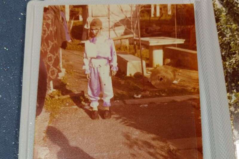 "זה בערך 35 שנה אחורה, הייתי בערך בן 8-9. את תחפושת הליצן הזאת אמא שלי תפרה בעצמה. היה לנו בבית שק גדול של תחפושות שאמא שלי תפרה, ומדי שנה כשפורים היה מתקרב כל תשעת הילדים במשפחה היו בוחרים תחפושת על פי שיטת הראשון שלוקח הוא הזוכה. וככה כולן עברו בין כל האחים. לרוב אני הייתי מלכת אסתר. אולי כי זה מה שאהבתי, או מה שנשאר לי בשק. עד היום אני די ליצן, אני מדבר שטויות, מצייץ שטויות בטוויטר, עושה שטויות. זה די מאפיין אותי".