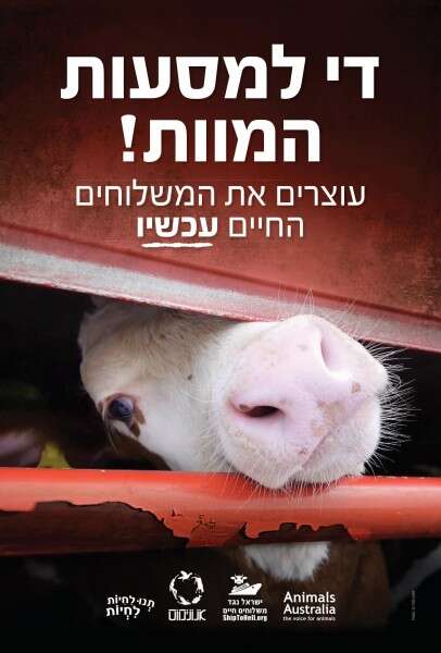 הקמפיין שהושק באוגוסט האחרון נגד משלוחים חיים // קרדיט: עמותת אנונימוס לזכויות בעלי-חיים, תנו לחיות לחיות וקבוצת ישראל נגד משלוחים חיים
