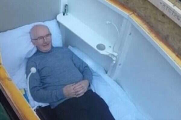 עבור אנשים רבים הרעיון של להיות שכוב בתוך ארון בעודם בחיים עשוי להיתפס כסיוט, אבל ג'ון אדוארדס עשה זאת עבור מטרה נעלה. הפנסיונר נתן "נשיקה אחרונה" ונפרד מאשתו, לפני שהוא נשכב בתוך ארון קבורה בחצר הכנסייה בבלפסט, בירת צפון אירלנד.