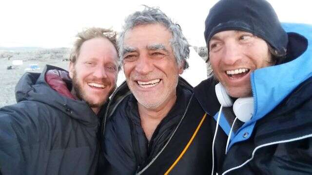 נחום (במרכז) עם יונתן ניר (משמאל) ודני מנקין בקנדה הארקטית