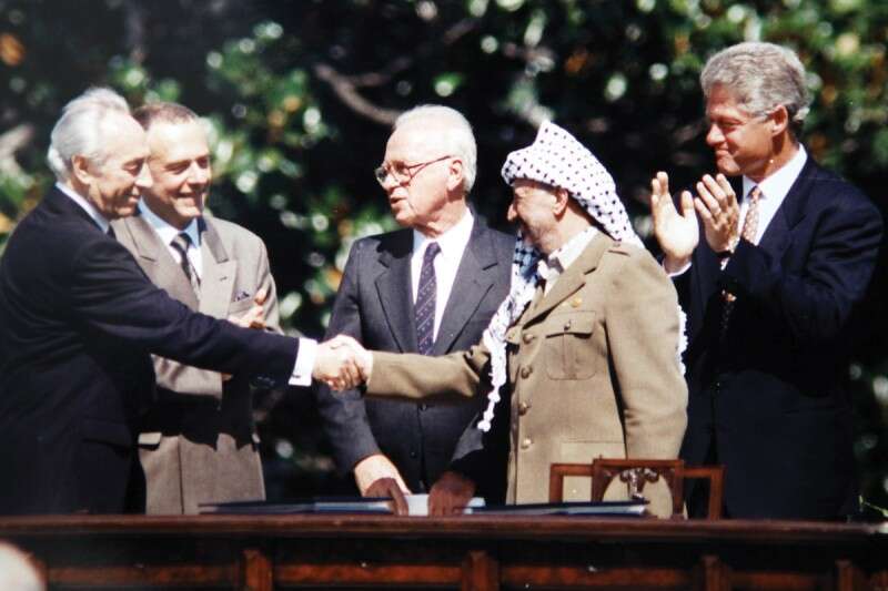 "ערפאת חשב שזה שלב תכסיסי; רבין ופרס הציפו את הגדה בהתנחלויות". מעמד הסכם אוסלו א' בבית הלבן, 1993 // צילום: גדעון מרקוביץ'