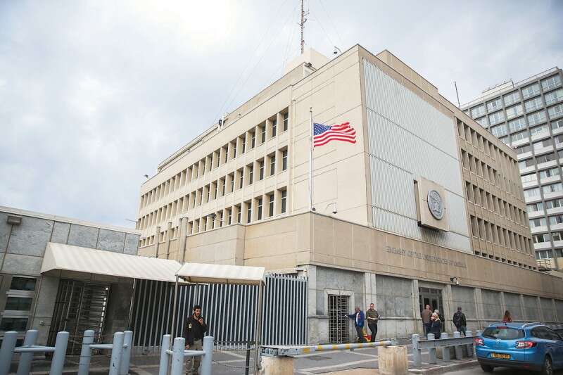 "בינתיים הכל ספקולציות". שגרירות ארה"ב בתל אביב // צילום: יהושע יוסף