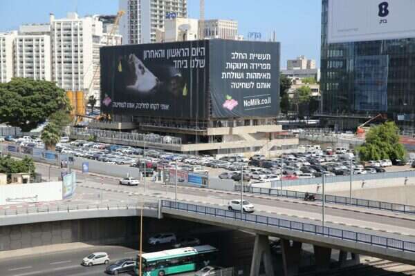 המאבק הטבעוני נגד תעשיית החלב מחריף: שלט חוצות ענק עלה לראשונה אתמול בנתיבי איילון כנגד תעשיית החלב. עלות השלט שהוצב באחד מהנתיבים העמוסים במדינה היא כ-200 אלף שקלים, שגויסו על ידי תומכים.