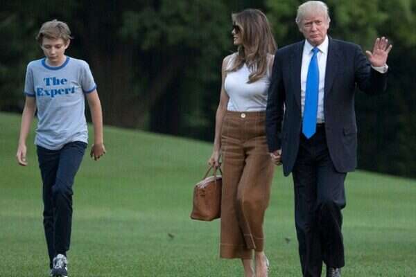הגברת הראשונה והנשיא נראו כשהם מחזיקים ידיים כשירדו מהמסוק הנשיאותי, מרין 1, על מדשאת הבית הלבן. הבן ברון נראה לצדם.