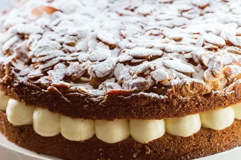 עקיצת הדבורה. עוגה קלאסית עם ציפוי קראנצ'י של שקדים // צילום: איתיאל ציון