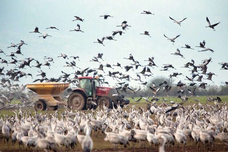 עגורים בעמק החולה // צילום: דרור ארצי / ג'יני