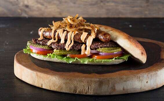 מה בכריך: לחם ממולא בשר, טחינה, ירקות והכל עובר תנור