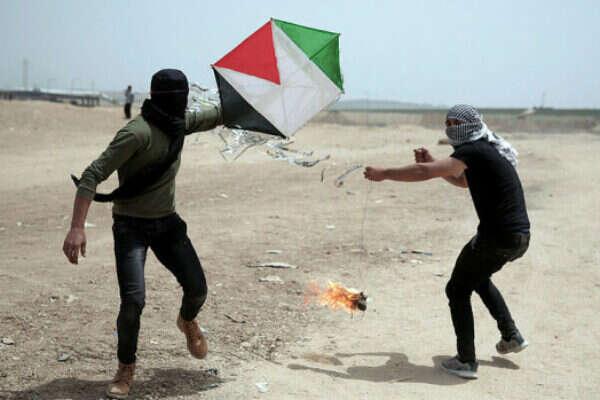 פלשתינים משגרים עפיפון תבערה// צילום: AP