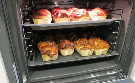 5. חוצים לאורך ל-2 חלקים שווים וקולעים צמה. מכניסים לתבנית באורך 30 ס"מ (אינגליש קייק מס' 3) ומתפיחים 45 דקות.