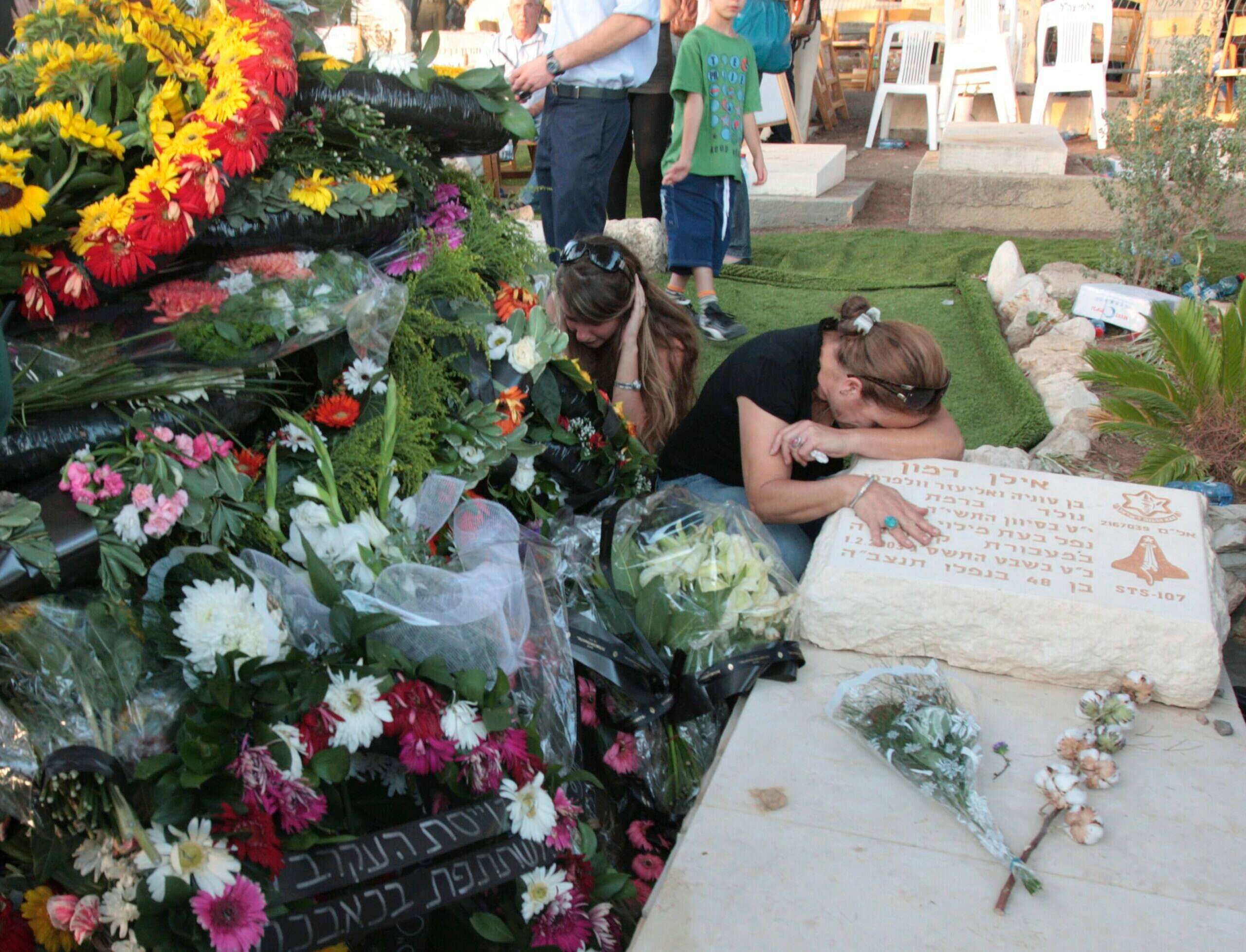 קרוב לאלפיים בני אדם, בראשם נשיא המדינה שמעון פרס וראש הממשלה נתניהו הגיעו לחלוק לטייס שנפל כבוד אחרון. בשעה 16:25, בדיוק 24 שעות לאחר שנפל מטוסו מהשמיים. שישה טייסים נשאו את הארון העטוף בדגל הלאום לקבר הטרי בנהלל, בסמוך לקברו של אילן רמון, ואז, לקול דממה עלתה רונה רמון לשאת דברים.