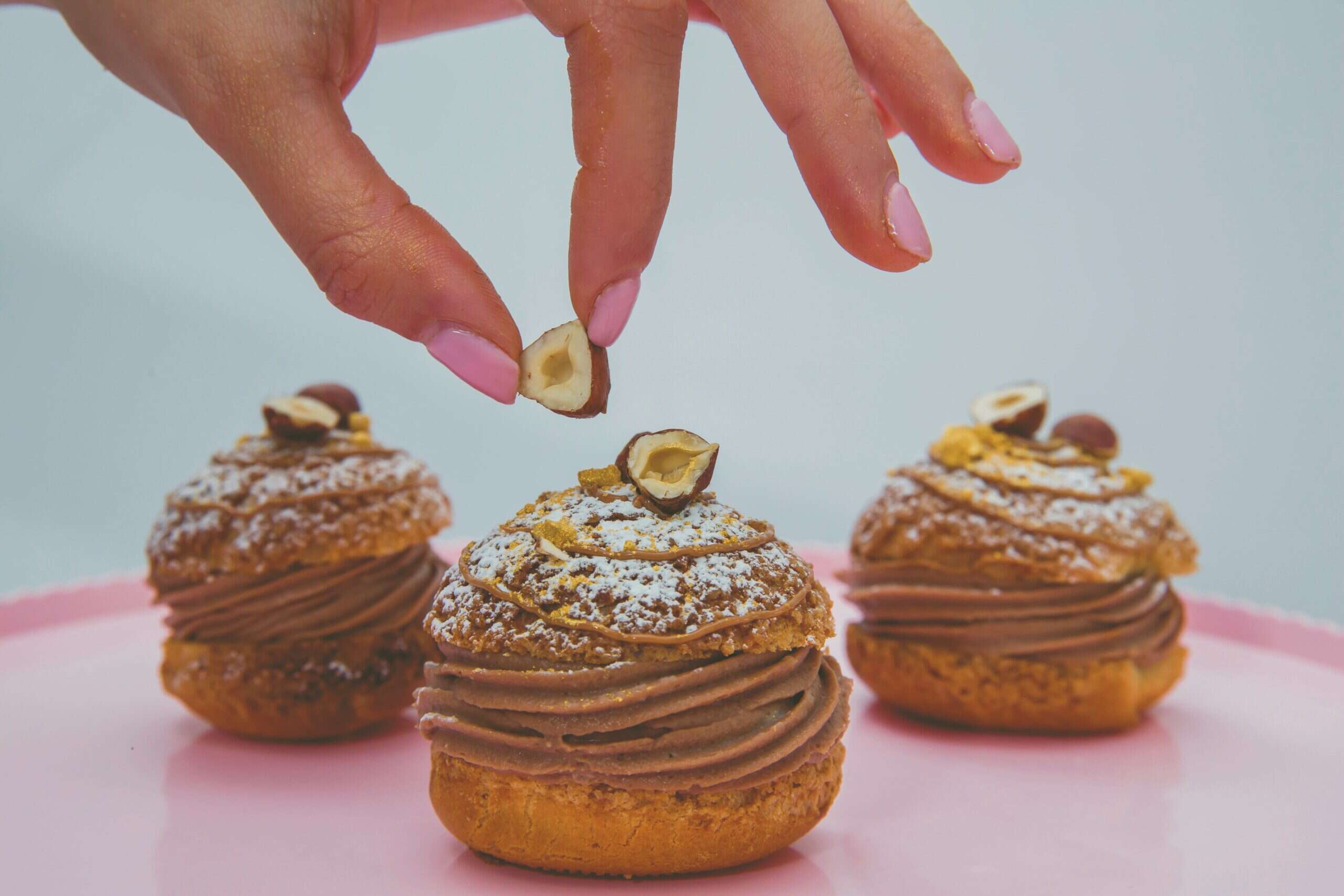 כאשר הבצק הופך למסה אחידה מעבירים לשק זילוף ומתחילים לזלף על תבנית סיליקון או נייר אפייה. זוכרים את השטרויזל? זה הזמן להוציא מהמקפיא ולהניח דיסקית עם פחזנית ולהכניס לתנור ל-25-35 דקות (אסור בשום אופן לפתוח את התנור).לאחר הוצאה מהתנור נותנים לפחזניות להתקרר וממלאים בקרם שהכנו מראש. כמובן שניתן לחתוך כמוני ולזלף בצורה מושלמת, לפזר אבקת סוכר מעל ואגוזי לוז חתוכים לשניים.
