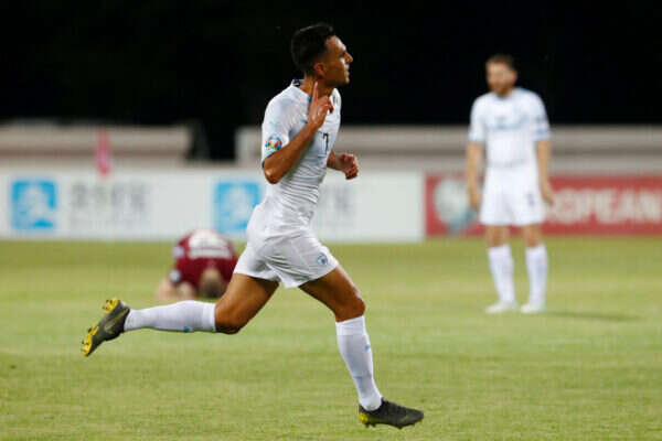 בירם כיאל שומר על הכדור ביום שישי בלטביה // צילום: אי.פי.אי