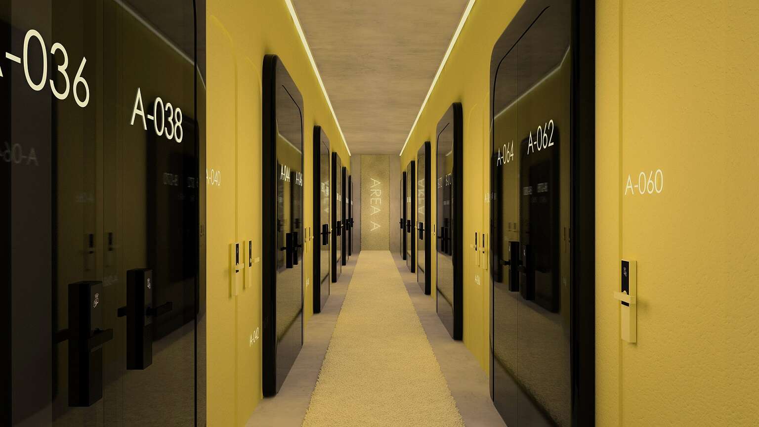 מלון הקפסולות יכלול כ-500 חדרי קפסולות חדישים ומודרניים. כל קפסולה תהיה בגודל של כ-4.2 מ"ר שמיועדת לזוג ובה ארון אחסון, מראה, תאורה כללית, תאורת לילה, מסך טלוויזיה שטוח 32 אינצ', כספת, מיני בר בתשלום, נישה לאחסון כללי, שקעי חשמל ועוד.