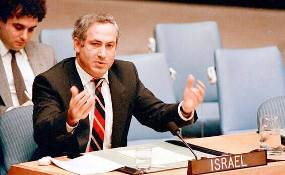 נתניהו באו"ם בתחילת דרכו כשגריר ישראל // צילום: אי.פי