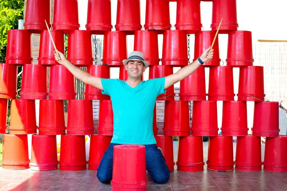 "בבתי ספר מלמדים מוצרט ואת התפתחות המוזיקה, ואני לא בטוח שזה מעניין את התלמידים", הוא אומר. "התחלתי לעשות סדנאות קצב עם דליים. גם חבר'ה שאמרו 'אין לי קצב' הצליחו. יש כאלה שעושים לפי ספירות, יש כאלה לפי דפיקות בכיסא, ויש כאלה שצריכים להסתכל על החבר שלהם. כולם נמצאים בתיפוף.