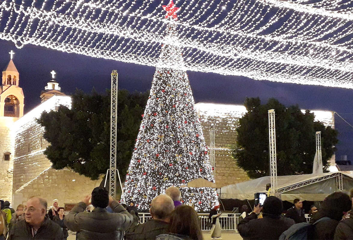 הדרך המקושטת מירושלים לבית לחם רומזת לי שלא הרחק מכאן נמצא הדבר האמיתי. עצי אשוח, פסלונים של מזחלות רתומות לאיילים דוהרים, ורימונים־ספק־דלועים על מעגלי תנועה מבטון, מוארים בפנסי רחוב מוזהבים כל הדרך מהעיר העתיקה בירושלים למעבר הגבול המאולתר בפאתי בית לחם. קשה לכבוש סקרנות כשהכיבוש מתחת לאף, וכשהגעתי לכיכר העירייה ההומה מול כנסיית המולד, כמה ימים לפני החג, הבנתי שאני לא היחידה.