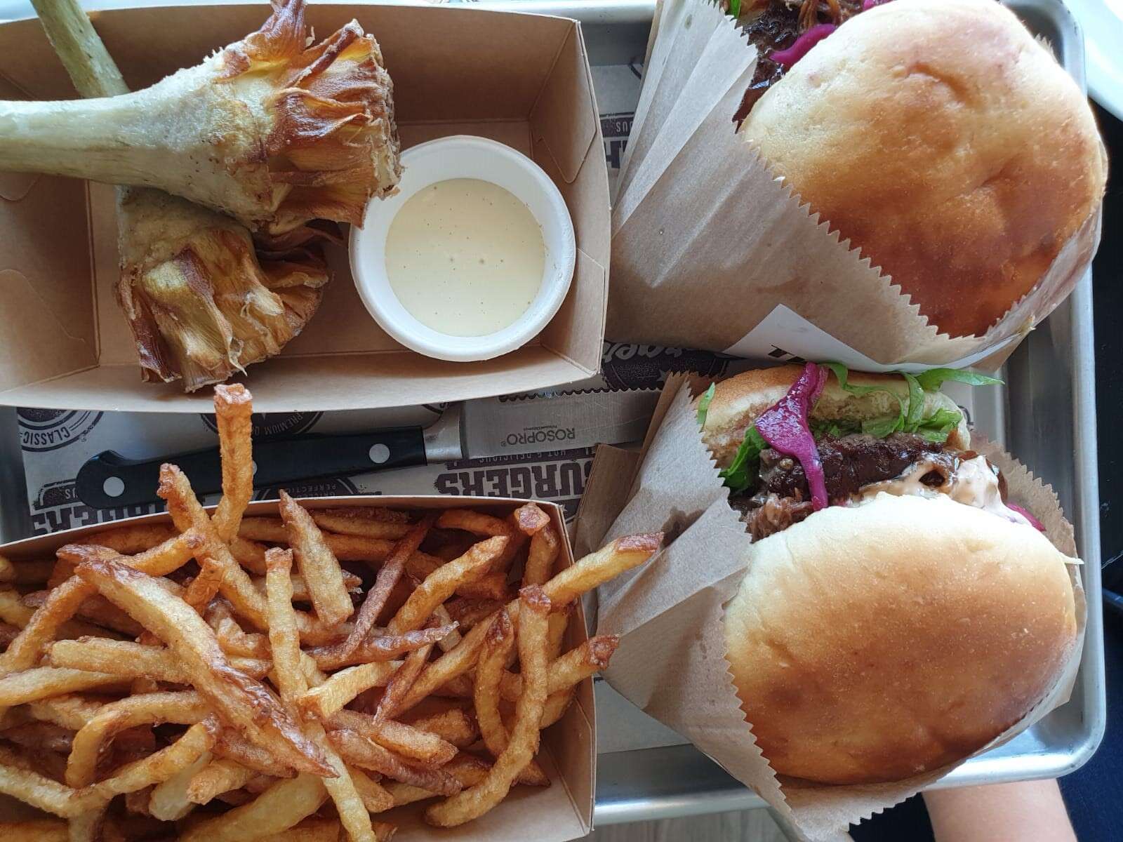 לצד ההמבורגר מומלץ לנסות את הצ'יפס ואת הארטישוק המטוגן. אין ספק שמדובר במנות מושחתות לגמרי, ובעיקר טעימות, שמוכיחות לנו, ולא בפעם הראשונה, שאפשר למצוא המבורגרים מוצלחים גם מחוץ לתל אביב, ואפילו מחוץ לאזור המרכז.