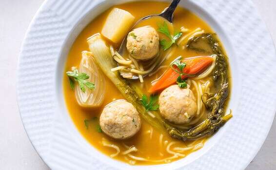 הסעודה המפסקת בביתנו התחילה תמיד־תמיד במרק עוף. כזה שהחמימות שלו עוטפת את הקיבה ומשרה רוגע כמו שרק מרק עוף יכול להשרות. למרק אני יוצר קציצות עוף פשוטות עם מעט קוואקר, ג'ינג'ר ובצל ירוק. אני שולק את הקציצות במרק המוכן ומגיש עם אטריות ביצים דקיקות, בדיוק כמו אמא.