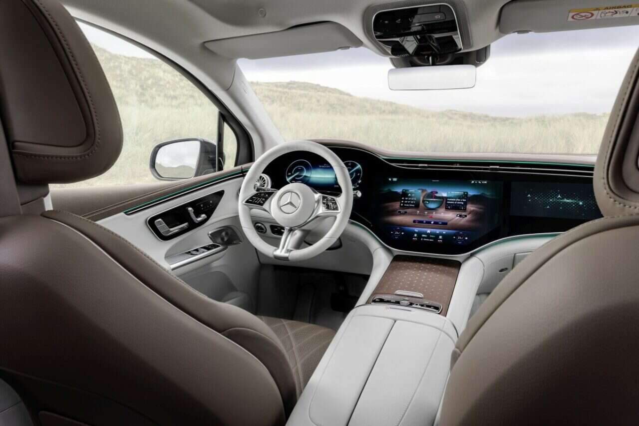 העיצוב של EQE SUV שומר על המראה המעוגל והמוכר מהדגמים החשמליים של מרצדס, בתוספת החזית המוכרת של המשפחה עם השבכה האטומה המושחרת והמרשימה לצד יחידות התאורה האופייניות. תא הנוסעים משלב את ממשק MUBX העדכני המתבסס על מסך 12.3 אינץ לנהג ומסך מגע 12.8 אינץ’ במרכז לוח המכשירים. כאופציה מוצע מסך ה-HyperScreen בגודל 141 ס”מ המתפרש על כל לוח המכשירים וכולל גם אופציות תפעול ובידור נפרדות מול הנוסע מלפנים.