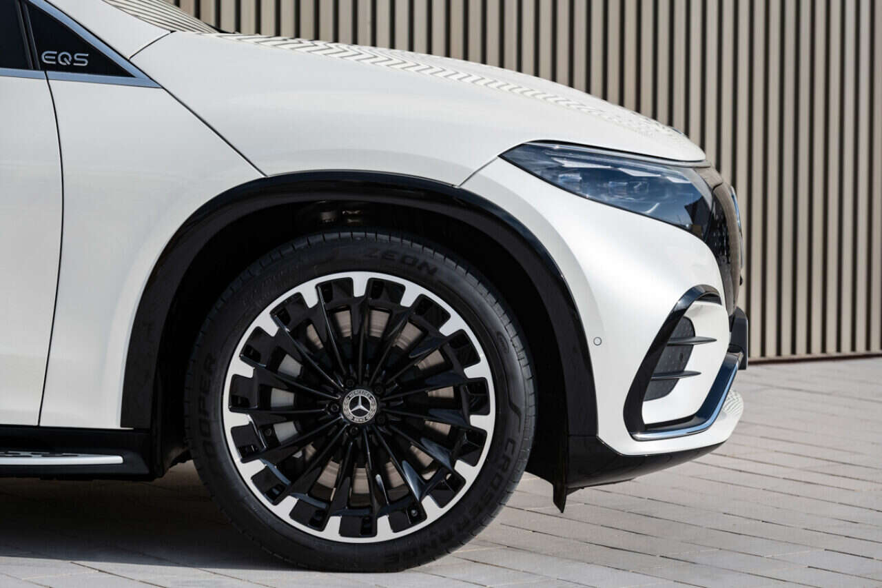 למרות שזה לא נראה ככה פנים אל פנים, מרצדס EQS SUV הוא רכב אדיר מידות. למרות שכאמור במפגש חזיתי הוא לא ממש נראה כזה. משהו בקווים החלקים שלו מצליח להעלים חלק מהממדים שלו. והוא גדול, שלא יהיה ספק. אורכו 5.13 מטר, בסיס הגלגלים משתרע על 321 ס”מ ומשקלו עומד על 2.8 טון.