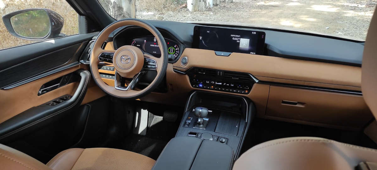 את העומק ההנדסי של מאזדה אפשר להרגיש כבר מהמטרים הראשונים. זה מתחיל במנוע שהוא לא פחות מנהדר. שישה צילינדרים בטור, מוגדש טורבו, שהוא חלק ונעים מחד ומטפס לסל”ד גבוה בתאווה. זה מסוג המנועים שמזכירים לנו למה אנחנו אוהבים בנזין כל-כך והוא לגמרי מאלו שהופכים להיות מחזה נדיר וגורמים לנו להצטער על כך. יש גם מערכת מיקרו היברידית (48V) שמאפשרת כיבוי של המנוע בגלישה במהירות גבוה לדוגמה כמו שכבר פגשנו בעבר. לא היה שימושי בימי הקיץ הקשוחים היות ובזמן הגלישה המזגן חדל מלעבוד. גם תחת עומס בסל”ד גבוה הרגשנו ירידה בתפוקה של המזגן, אם כבר נגענו בנושא הזה. בכל מקרה, זה לא ממש עזר לצריכת הדלק הממוצעת שעמדה על 7.5 ק”מ לליטר במהלך המבחן.