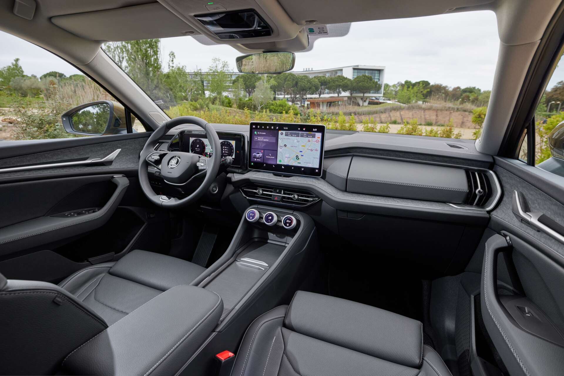 לצד לוח מחוונים דיגיטלי “10.25, מצוידת המכונית במסך מולטימדיה שצמח ל-“13 וכולל גם קישוריות אלחוטית לסמארטפונים, ידית הילוכים אלקטרונית שעברה למיקום מאחורי ההגה, ועיצוב סביבת נהג ונוסעים הרבה יותר נעים, הכולל דיפונים איכותיים יותר ושילוב נרחב של אריג העשוי פלסטיק ממוחזר. כמו בכל סקודה, גם כאן נרשמים שפע של פטנטים ופתרונות אחסון, לרבות צמד משטחי טעינה אלחוטיים לטלפונים הכוללים גם קירור של המכשירים.
