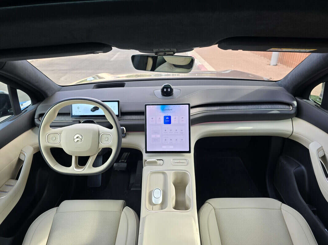 ה-EL6 הוא כאמור לא רכב זול ולכן מרכיב עיקרי במבחן הוא התמורה למחיר. עוד לפני שנכנסים לתא הנוסעים מבינים כי לא מדובר בעוד רכב פנאי חשמלי. תא הנוסעים עמוס באבזור ובטכנולוגיה. מלפנים תמצאו זוג מסכים עם ממשק מהיר וגרפיקה עכשווית: מסך אחד המשמש כלוח המחוונים והשני משמש כמסך המולטימדיה השולט על מרביתן של מערכות הרכב. במידה וזה לא מספיק לכם תוכלו גם להקרין נתונים נבחרים על השמשה הקדמית. מהנדסי ניו לקחו כנראה את העניין הטכנולוגי, שמלווה ב”העלמת כפתורים” כפרוייקט אישי, משום שעל מנת להזיז את ההגה או את מראות הצד תאלצו לנבור בתפריטי המסך, וכך גם על מנת להזיז את תריסי מערכת בקרת האקלים שלא ניתנים לגישה פשוטה באמצעות היד.