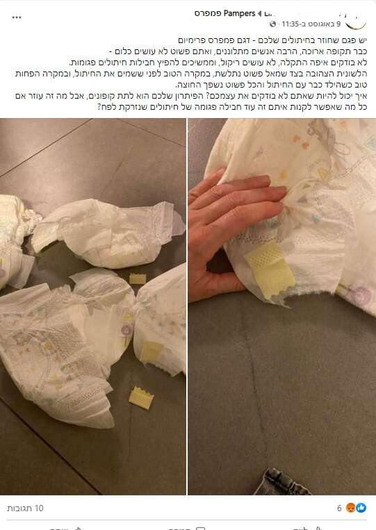 מהחברה נמסר אז: "מותג פמפרס מבית 'פרוקטר אנד גמבל' פועל לייצר את החיתולים הטובים, האיכותיים והנוחים בעולם. בדיקה מעמיקה במפעל העלתה כי תקלה אקראית בפס ייצור בודד, גרמה לחולשה בחיבור הסוגרים במספר מוגבל של חיתולי פמפרס פרימיום מידות 6-3. התקלה כמובן טופלה באופן מיידי בכדי להבטיח את סטנדרט האיכות הגבוה ביותר בתהליכי הייצור של החברה. מספר שירות לקוחות 1800-666-775".