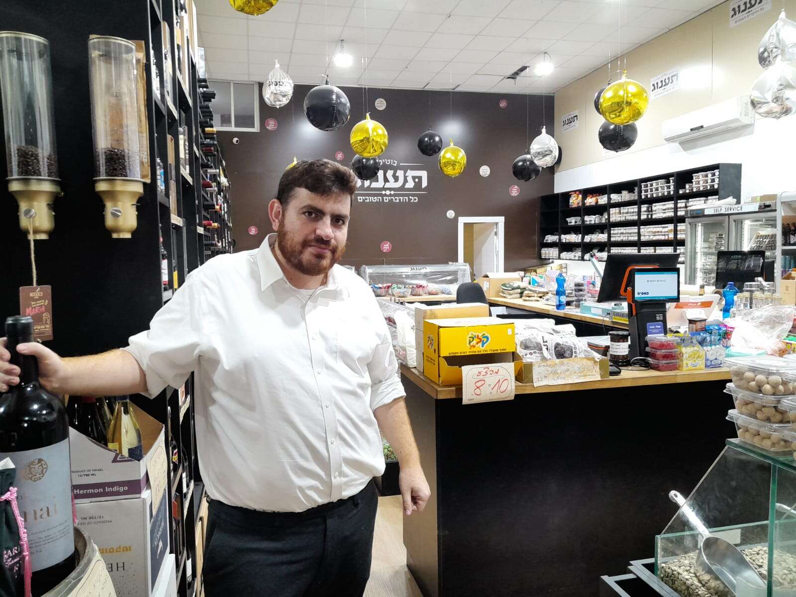 יהונתן משיח הקים באפריל האחרון את "תענוג" בגבעת שמואל, עסק שמוכר במשך השבוע פיצוחים, קטניות, ממתקים, יין ועוד, ובסוף השבוע מציע בחנות דוכן עם אוכל יהודי מוכן לשבת.