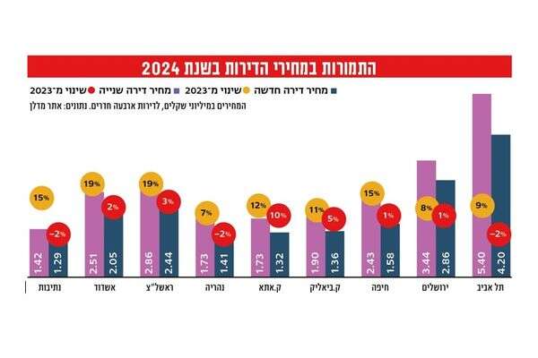 מנכ"ל מדלן, טל קופל: "ב־2024 אנחנו רואים בבירור את שינוי העומק ש־7 באוקטובר גרם לשוק הנדל"ן הישראלי. ההבנה שאין חלק במדינה שבו ממ"ד אינו קריטי לאיכות החיים הסיטה את הישראלים לדירות חדשות או לדירות יד שנייה בעלות ממ"ד - כלומר חדשות יחסית. הנהירה לדירות חדשות קיבלה רוח גבית ממבצעי היזמים, שפתרו עבור רבים את שאלת המימון, בניגוד לשוק יד שנייה שבו אין אפשרויות מימון כל כך גמישות. התוצאה היא עליית מחירים בדירות החדשות - גם כשלוקחים בחשבון את המבצעים - וירידה קלה במחירי דירות יד שנייה בערים מסוימות".