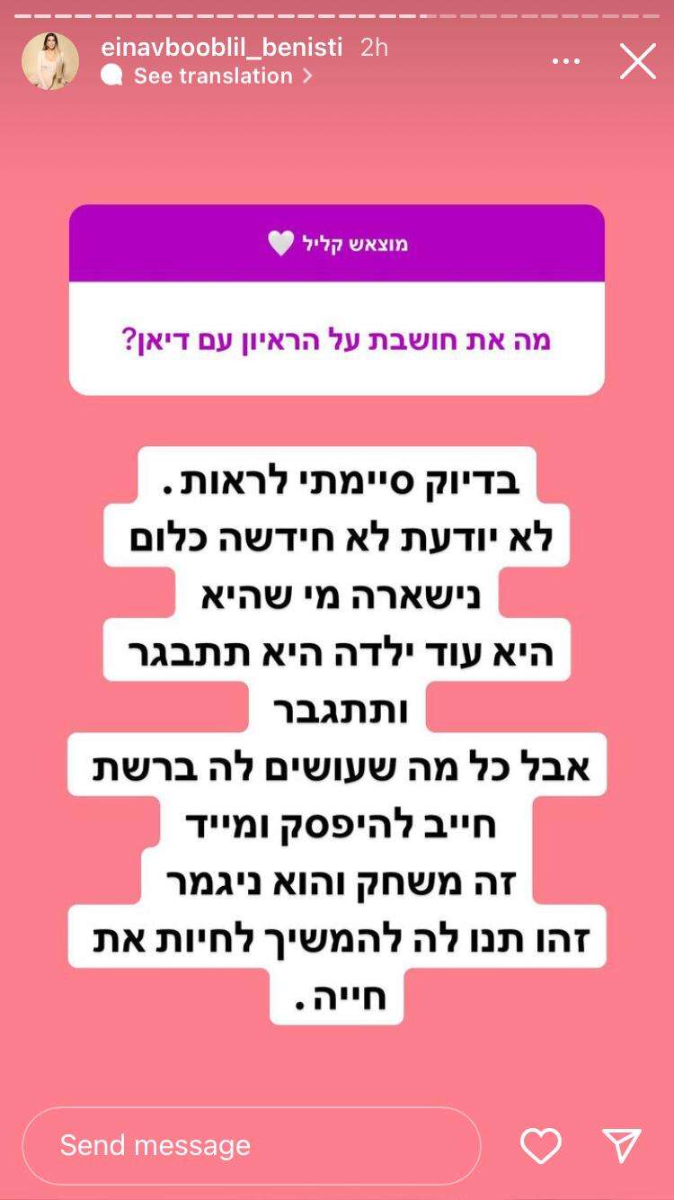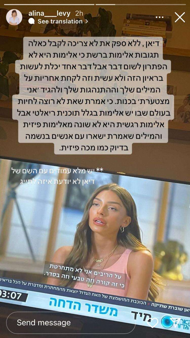 "לא יודעת, לא חידשה כלום. נשארה מי שהיא. היא עוד ילדה, היא תתבגר ותתגבר. כל מה שעושים לה ברשת חייב להפסיק ומיד. זה משחק, וזה נגמר. זהו, תנו לה להמשיך לחיות את חייה", כתבה עינב בובליל. "דיאן, ללא ספק את לא צריכה לקבל כאלה תגובות אלימות ברשת, אבל דבר אחד יכולת לעשות בראיון הזה ולא עשית והוא לקחת אחריות על המילים שלך וההתנהגות שלך", הצטרפה אלינה לוי לביקורת.