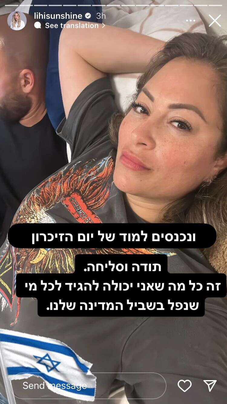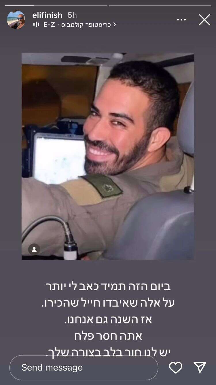 "נכנסים למוד של יום הזיכרון. תודה וסליחה. זה כל מה שאני יכולה להגיד לכל מי שנפל בשביל המדינה שלנו", כתבה ליהיא גרינר. "ביום הזה תמיד כאב לי יותר על אלה שאיבדו חייל שהכירו. אז השנה גם אנחנו. אתה חבר, פלח. יש לנו חור בלב בצורה שלך", כתב אלי פיניש על חברו הטוב בר פלח, קצין הנח"ל שנהרג בחילופי אש בג'נין בספטמבר בשנה החולפת.