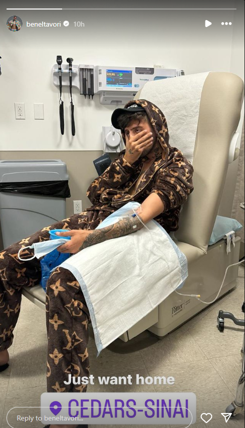 בשעה זו עובר הזמר הישראלי סדרת בדיקות בבית החולים. בסטורי שפרסם בחשבון האינסטגרם שלו, שבו יש לו 911 אלף עוקבים, הוא פרסם תמונה שלו שבו הוא נראה מחובר לאינפוזיה. בכיתוב שצירף לה, הוא כתב "Just Want Home" ("פשוט רוצה הביתה", בתרגום מאנגלית).