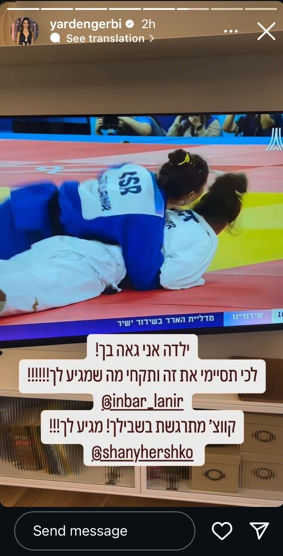 ירדן ג'רבי, שמכירה את הסיטואציה מקרוב, פרגנה לספורטאים. "ילדה אני גאה בך. מתרגשת בשבילך, מגיע לך", כתבה ללניר. "גלדיאטור אתה מדליסט אולימפי! מגיע לך ולאורן כל כך! יושבת בבית ובוכה מהתרגשות", הוסיפה וכתבה גם לפלצ'יק.