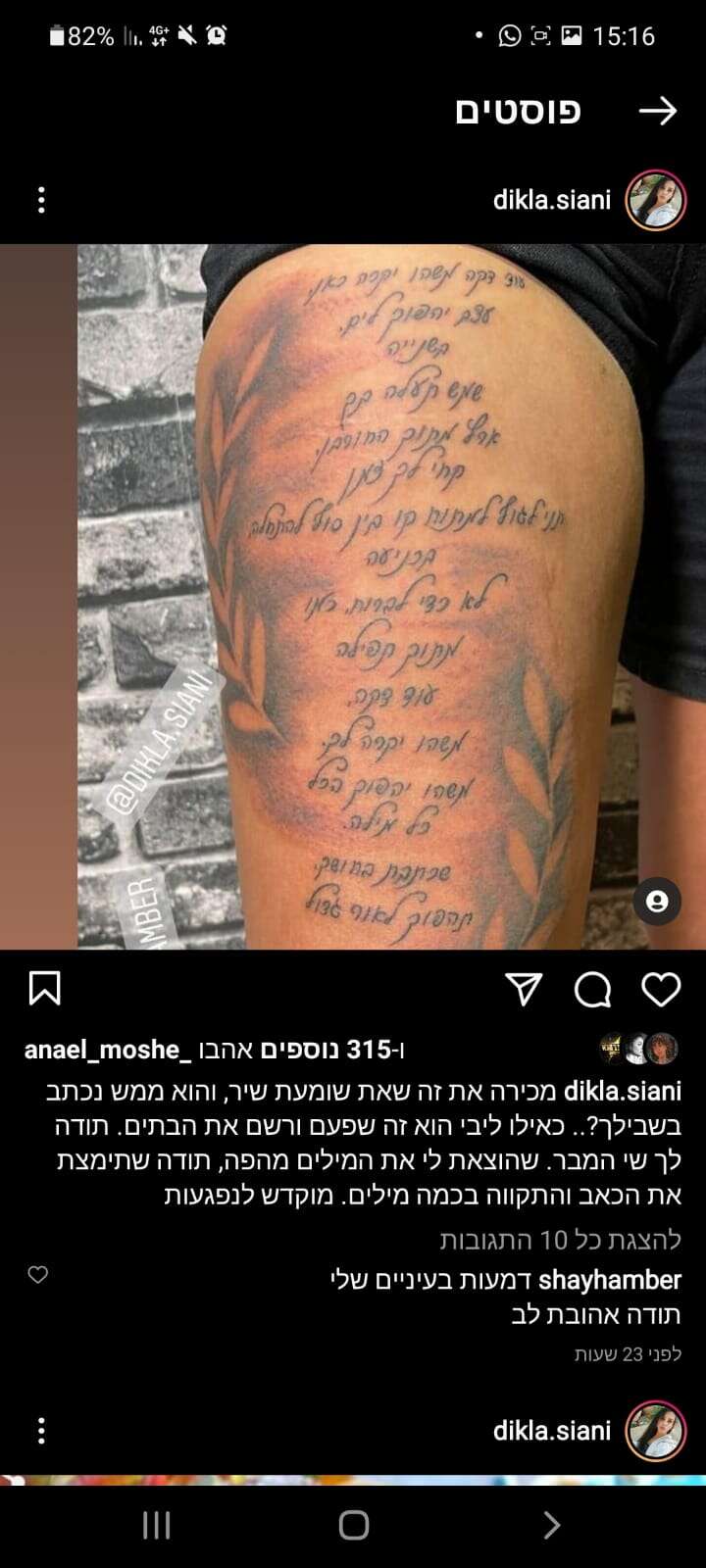 אז איך זה מרגיש כשמישהו מקעקע על גופו מילים של שיר שכתבת? את מתמודדת "הכוכב הבא" , שי המבר, זה ריגש מאוד.